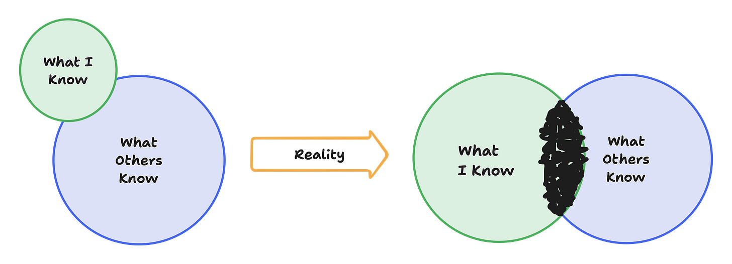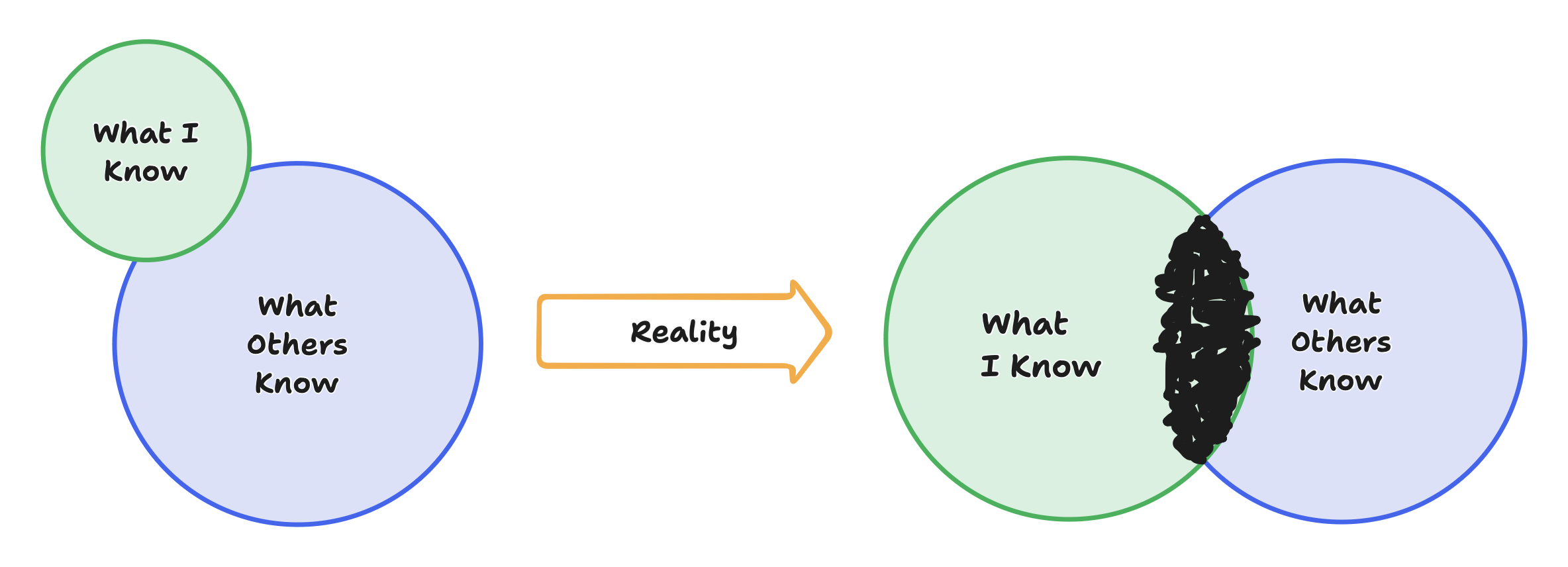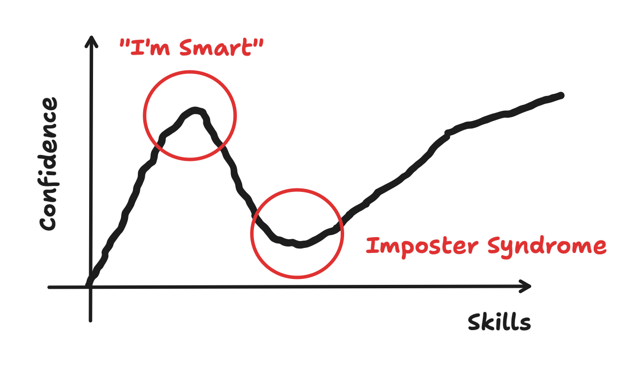 The Dunning-Kruger effect, shows that people with lower skills tend to be more overconfident about their abilities, and when their skills start to improve, their confidence starts to go down. This is where the Imposter Syndrome likes to appear.